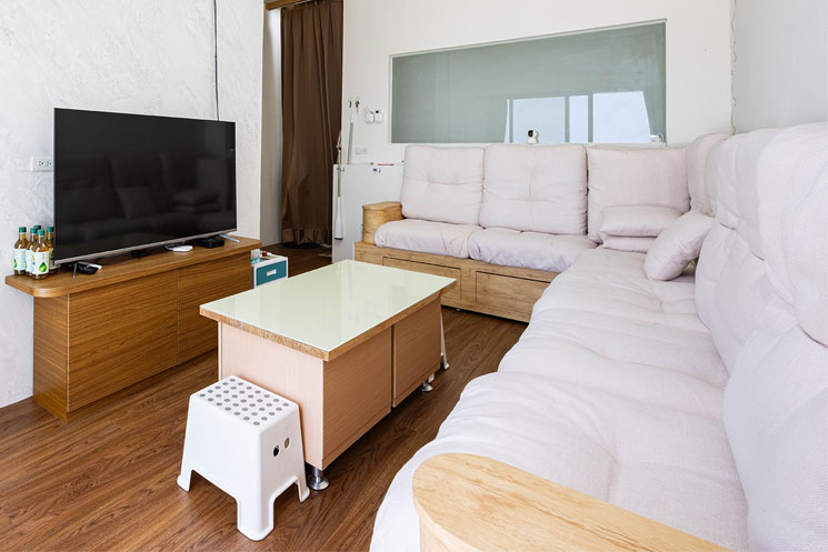 為了符合多代同堂或團體香客的需求,均安特別規劃了大量體的和式臥房與公共客廳